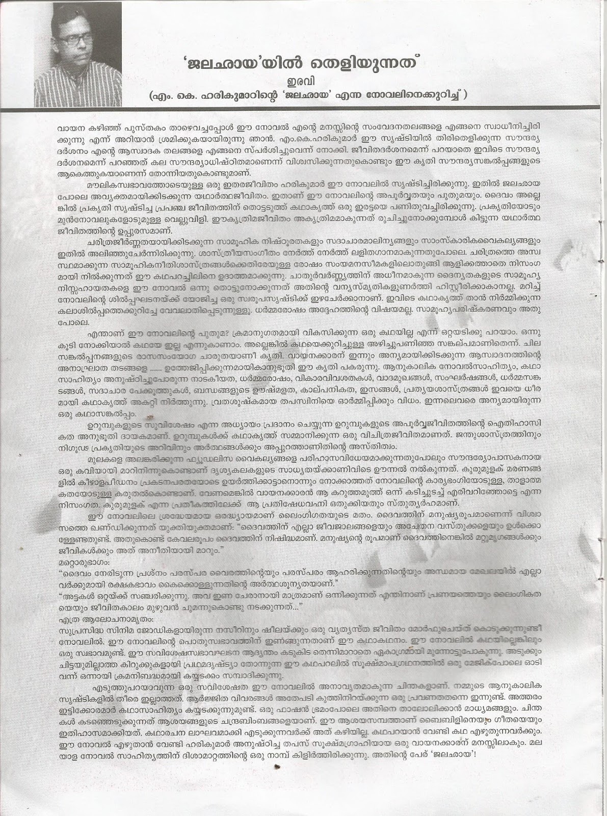 ഭാവിയിൽ ഗുരുവിനെക്കുറിച്ച് മനസ്സിലാക്കാൻ ഹരികുമാറിന്റെ ഈ ഒരൊറ്റ നോവൽ മാത്രമാവും ഉണ്ടായിരിക്കുക –