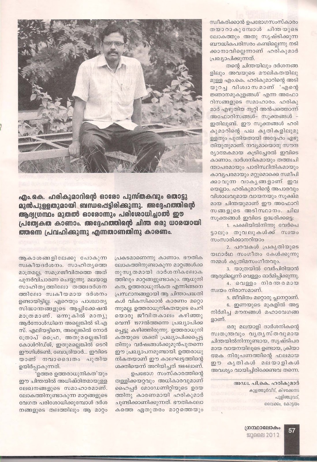 m k harikumar pages